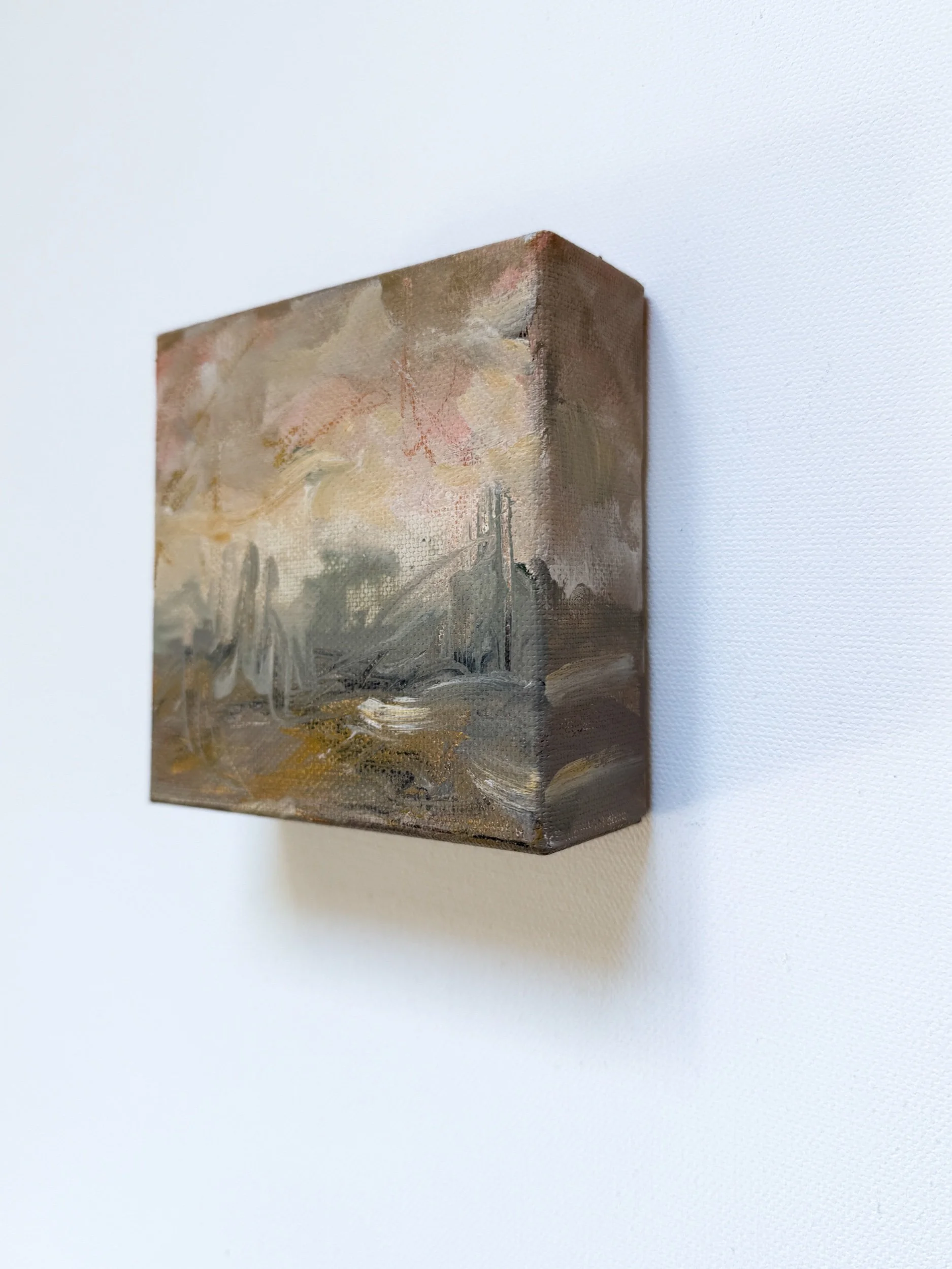 These 4x4” mini paintings bring abstract landscapes to life, each crafted with layers of acrylic and mixed media. Small yet impactful, each piece embodies a unique landscape, blending textured brushwork with mixed media accents to create an atmospheric scene.