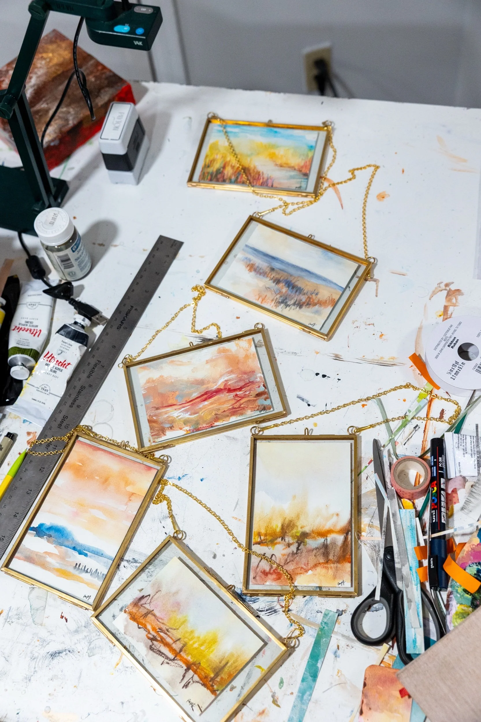 Bring a piece of my sketchbook into your home with this exclusive 4x6” floating frame, complete with a hanging chain. Each frame features an original painting on double-sided paper, giving you two artworks in one — a tiny rotating exhibit you can flip anytime.