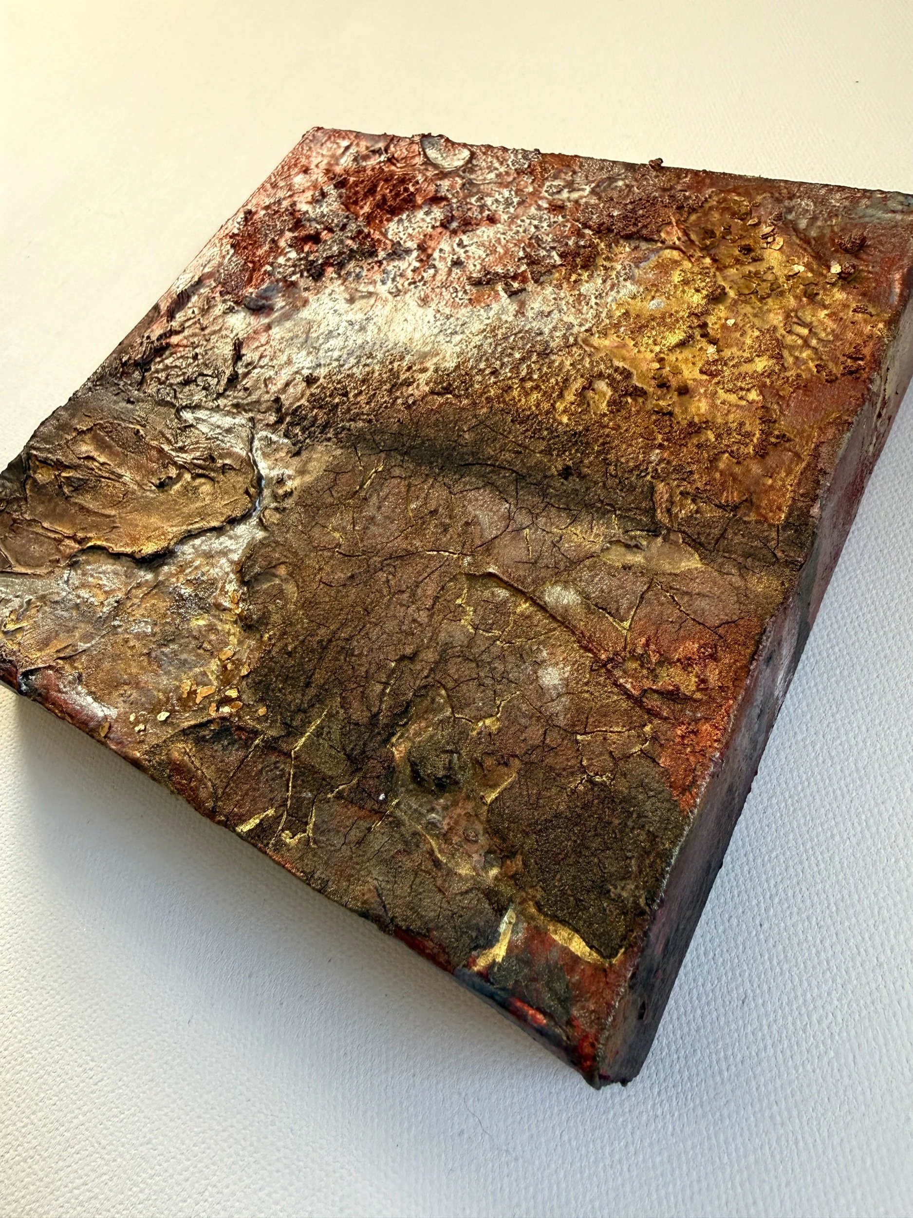 Materials: Acrylic paint, acrylic mediums, gold mica flakes, pigment powder, mixed media